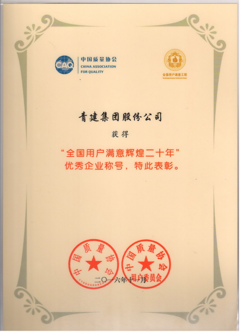 On November 23 and 24, 2016, the commendation conference on conducting Chinese-customer-satisfied projects 2016 was solemnly held in Kunming by the Consumer Committee of China Association for Quality. Jia Fuxing, the chairman of China Association for Quality, and Chen Bangzhu, the honorable chairman of the organization attended the meeting, along with more than 400 representatives from construction enterprises, industrial associations and consumer committees. At the conference Chinese-customer-satisfied model and outstanding work units that have conducted the works to consumer’s satisfaction in 2016 were commended. CNQC won the title of “Outstanding Enterprises to Chinese Consumers’ Satisfaction for 20 Years”, and its four projects were named “Chinese-customer-satisfied projects”, and up to now, 34 projects of the company have won such honor.