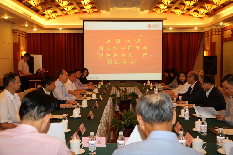 On June 10, Singapore-China Business Association investigation group led by the association chairman Hu Jinsheng and the chief representative of Shandong province at the economic and trade office of Singapore Wang Xuanyu, visited CNQC, the group members including Bi Xiaoqiong, president of the board of SH Group Limited, Huang Xuanmin, general manager of Xiefa Paints Corporation, Ye Shuxia, vice-president of Yinhai Asset Management Pte. Ltd., Zhao Heng, president of the board of Zhong Heng International Travel Limited, Zheng Xianyu, manager of Yuantai Fuel Trade Pte. Ltd., Li Delong, president of the board of A.K. Lee Enterprises Pte. Ltd., Zhuo Chaolai, president of the board of Lianmei Metal Pte. Ltd., and Nie Jinfeng, executive secretary of Singapore-China Business Association. Chairman of the board of Guotsing Holding Group Co., Ltd. Du Bo, president Wang Xianmao, executive presidents Wan Qingdong and Lin Chunsheng had talks with the guests at the meeting room on the 30th floor.
