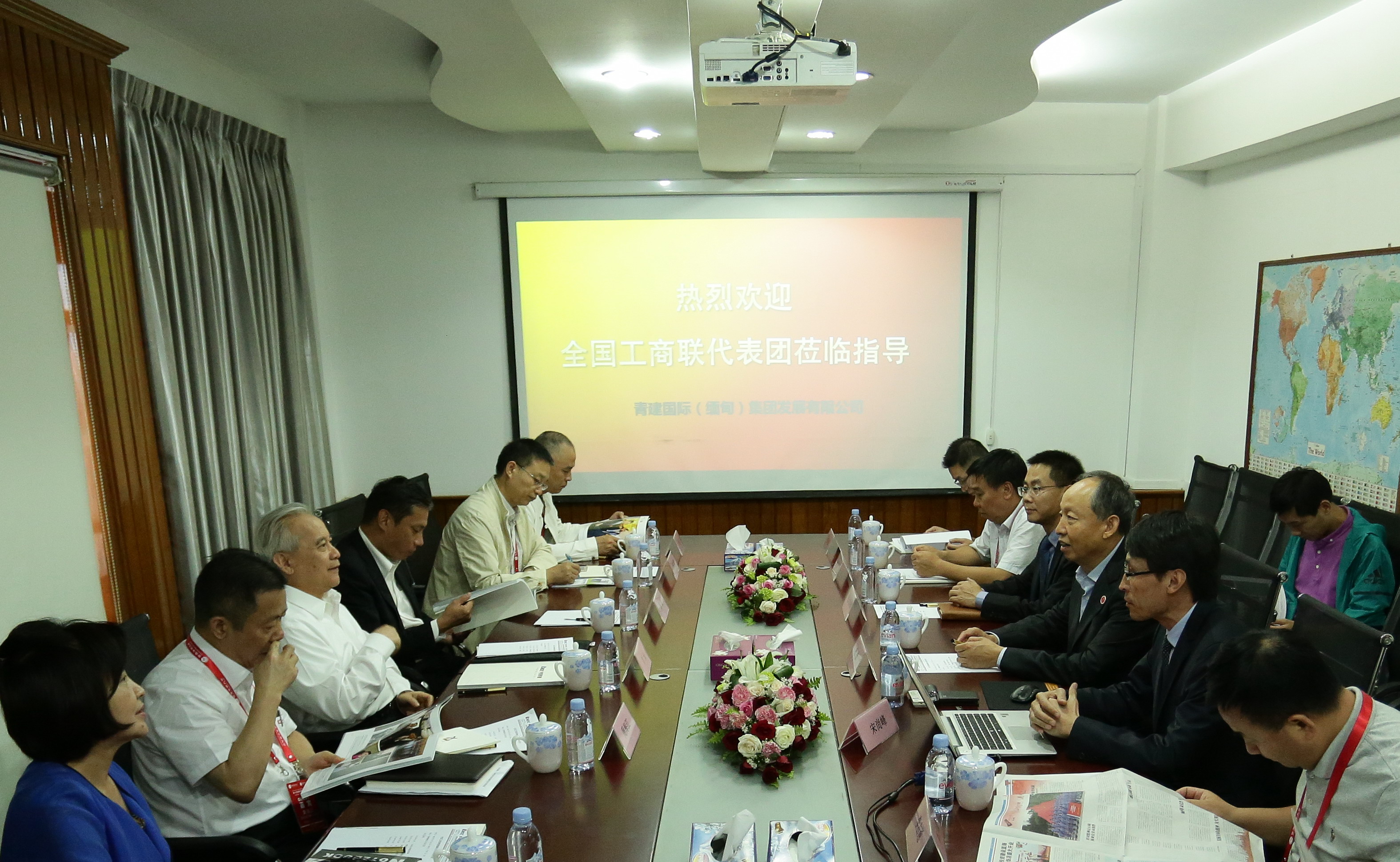 In corporate headquarters in Myanmar, Du Bo, the Chairman expressed his warm welcome to Chairman Wang and his delegations. On the meeting, the advertising video of Qingjian+ on the “One Belt and One Road” was demonstrated to the delegations. Song Shangfeng, the Chairman of the regional management enterprise of Qingjian International (Myanmar) reported the introduction of Guoqing Group and Qingjian Group, “Qingjian+ on the ‘One Belt and One Road’” and development situation of Qingjian Myanmar Enterprise.