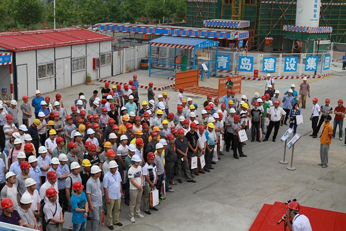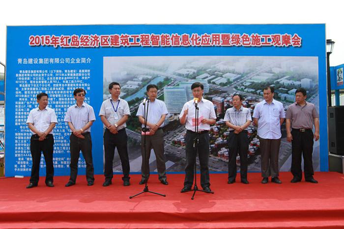 6月18日,2015年紅島經(jīng)濟(jì)區(qū)建筑工程智能信息化應(yīng)用暨綠色施工觀摩會(huì)在青島建設(shè)集團(tuán)承建的國(guó)際信息創(chuàng)新園項(xiàng)目順利舉行。觀摩會(huì)由區(qū)質(zhì)安監(jiān)站站長(zhǎng)王進(jìn)文主持,區(qū)建設(shè)局局長(zhǎng)蒲洪強(qiáng)、青島建設(shè)集團(tuán)總裁孫華明分別講話(huà),紅島經(jīng)濟(jì)區(qū)內(nèi)各在建工程建設(shè)單位、監(jiān)理單位、施工單位、勞務(wù)單位代表400余人參加了本次觀摩會(huì)。