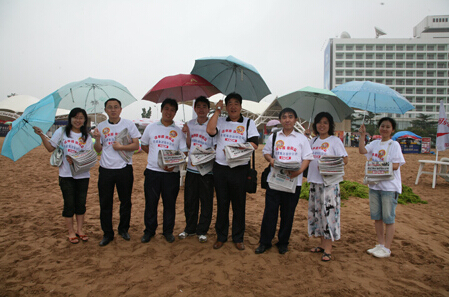 7月18日上午,青建集團組織志愿者在第一海水浴場參加了由青島市紅十字會和《青島早報》聯(lián)合主辦的微塵報紙義賣大型公益活動,大家冒著大雨準時來到活動地點,為支持社會公益事業(yè)和弘揚微塵精神奉獻一份力量。