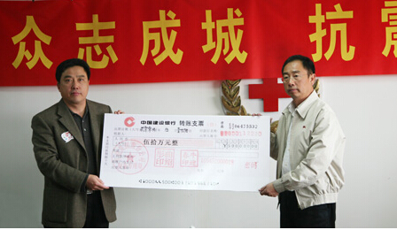 5月14日,為支援災(zāi)區(qū)人民抗擊災(zāi)難,華友公司“讓愛(ài)心在這里飛揚(yáng)”主題募捐會(huì)在公司會(huì)議室進(jìn)行,公司員工共捐款30000余元。華友菲律賓分公司得知此消息后,專門與公司聯(lián)系,通過(guò)轉(zhuǎn)帳的方式捐款10000元。