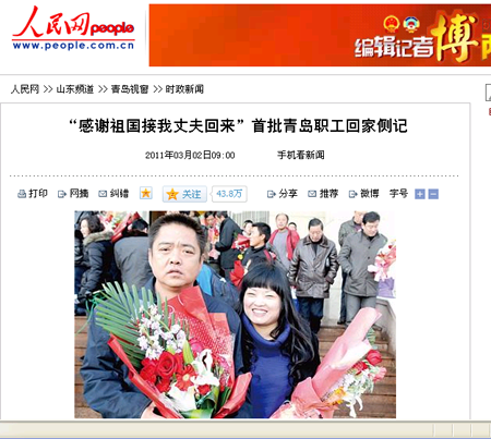 集團(tuán)利比亞分公司1293名員工在6天時(shí)間內(nèi)全部安全回國,媒體給予高度關(guān)注,據(jù)不完全統(tǒng)計(jì),共有新華網(wǎng)、人民網(wǎng)、新浪網(wǎng)、搜狐網(wǎng)、網(wǎng)易等網(wǎng)絡(luò)媒體以及青島日報(bào)、半島都市報(bào)、青島早報(bào)、青島財(cái)經(jīng)日報(bào)等平面媒體予以報(bào)道。3月2日,包括青島日報(bào)在內(nèi)的島城四家主要媒體均在頭版以較大篇幅報(bào)道,3月7日,青島日報(bào)第五版整版刊登長篇通訊予以詳細(xì)報(bào)道。以下是部分主要媒體的報(bào)道。